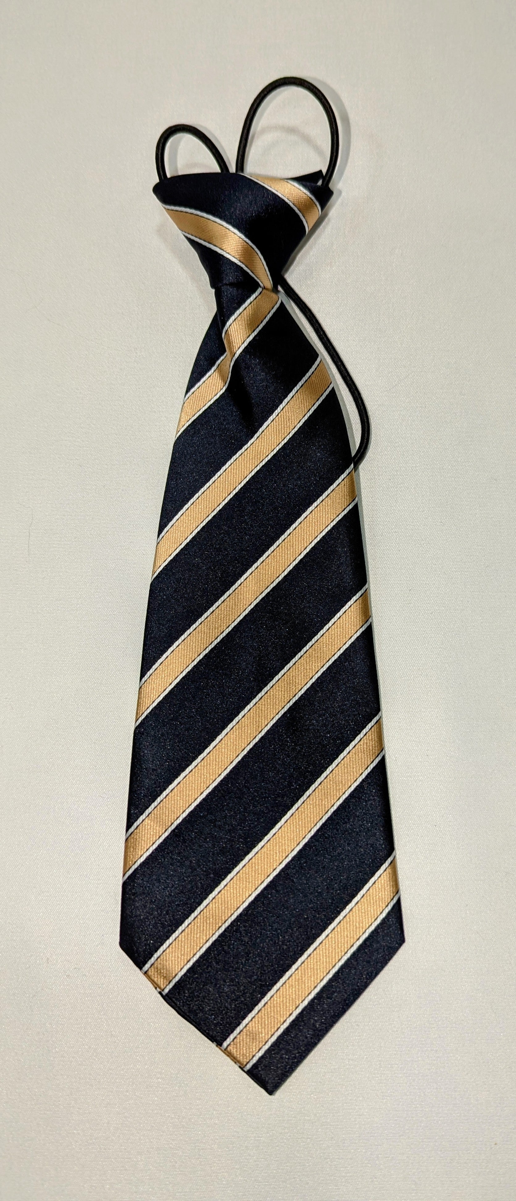 Wow your furry friend with this stylish blue and gold stripe tie designed specifically for mid-sized dogs. Made from durable polyester, this accessory will have your pup looking dapper and feeling confident. Time to turn heads at the dog park! Ties are 9 1/2" long.