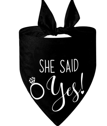 Put a ring on it with our She Said Yes Bandana! Made of soft black cotton, this bandana declares your engagement with style. Perfect for pet parents or fashion-forward fur babies (who said they can't be both?).