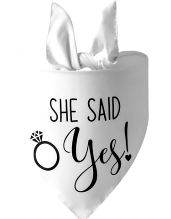 Put a ring on it with our She Said Yes Bandana! Made of soft white cotton, this bandana declares your engagement with style. Perfect for pet parents or fashion-forward fur babies (who said they can't be both?).